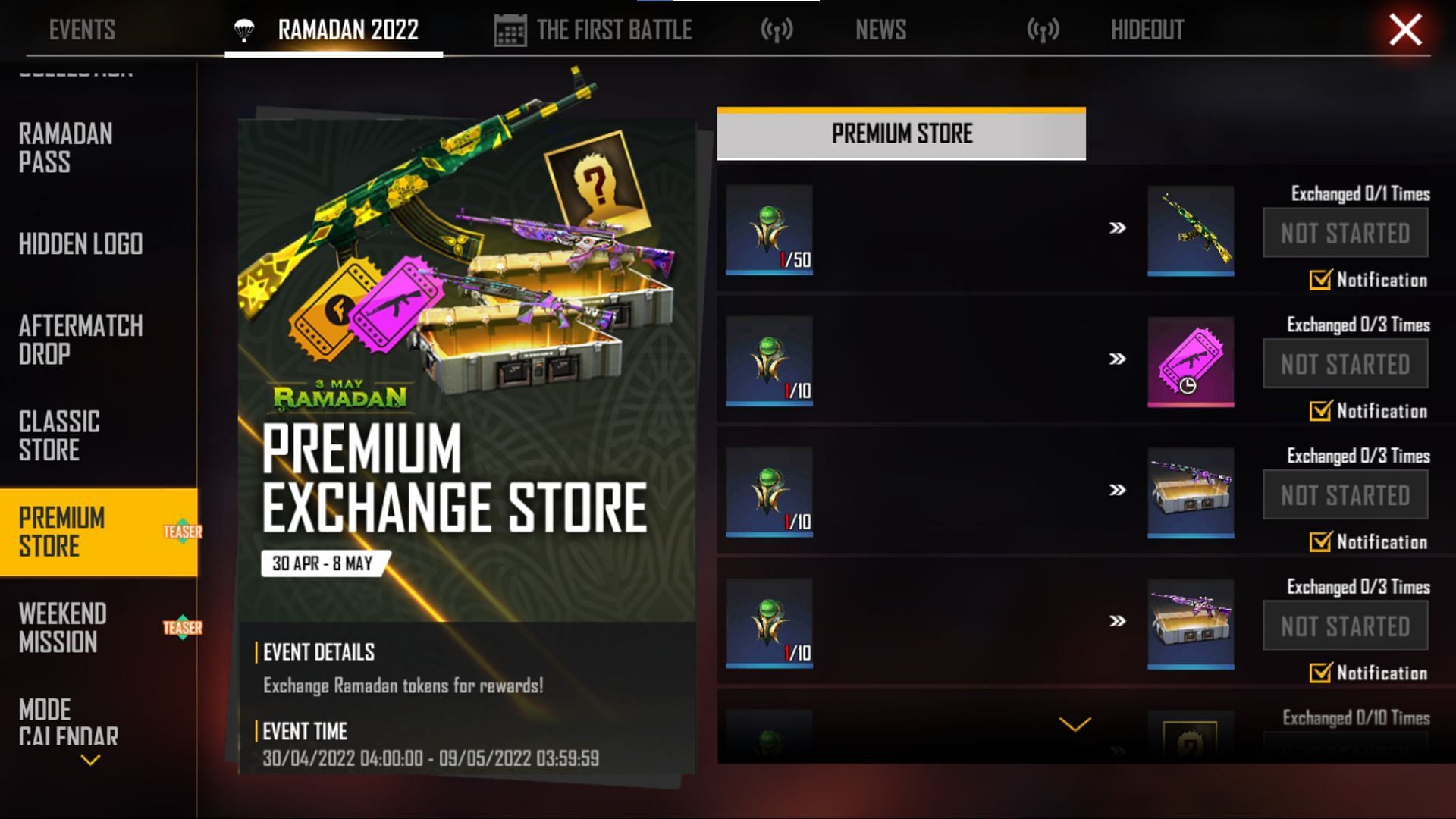 The events to collect the Ramadan Token started on 18 April and will be available till 8 May. However, the premium exchange store featuring AK47 Emerald Power has not begun yet and will become available in the coming days.