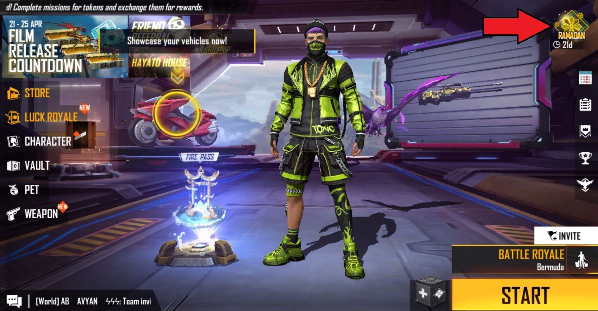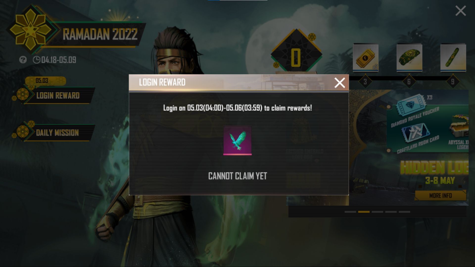 Step 1: Open Free Fire and visit the ‘Ramadan 2022’ section by clicking on the calendar icon.