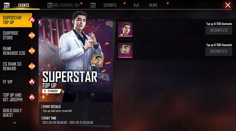 Presently, the "Superstar Top-Up" event is ongoing in Free Fire, and users have the opportunity to obtain the following: