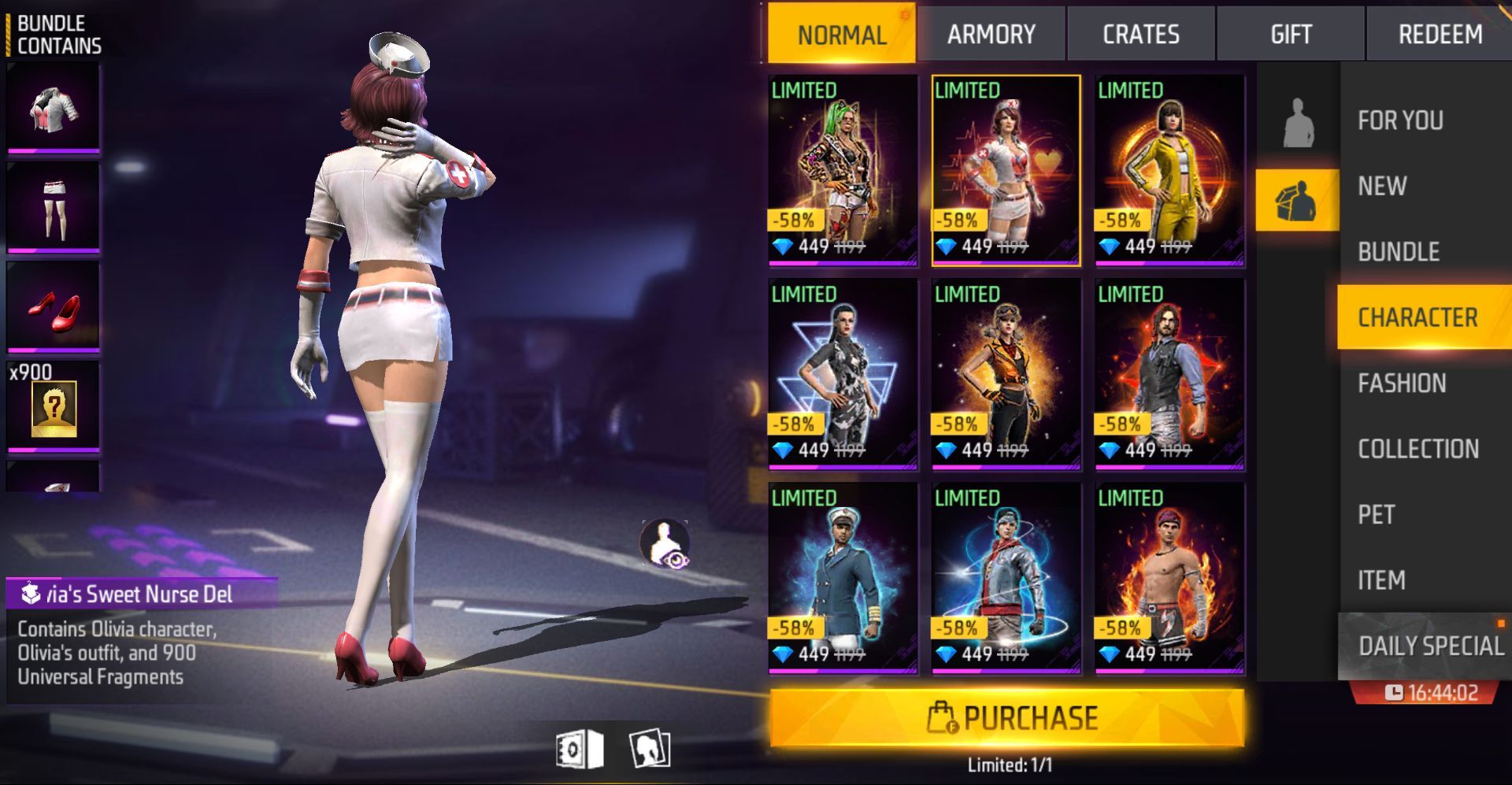 Step 1: Open the store in Free Fire MAX and select the character section under the Normal tab.