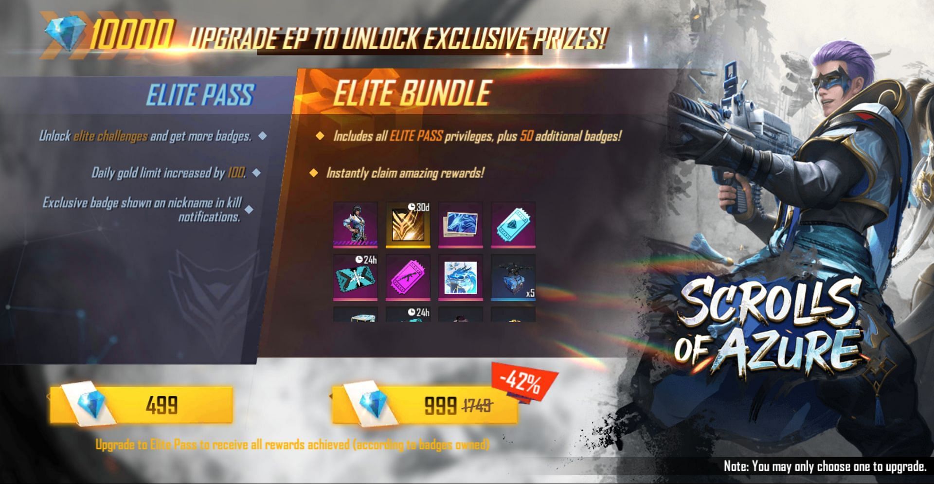 Those who acquire the pass will be able to obtain items such as two costume bundles, skins, avatars, and more. The developers essentially provide two separate paid editions - Elite Pass and Elite Bundle, which can be obtained for 499 and 999 diamonds, respectively.