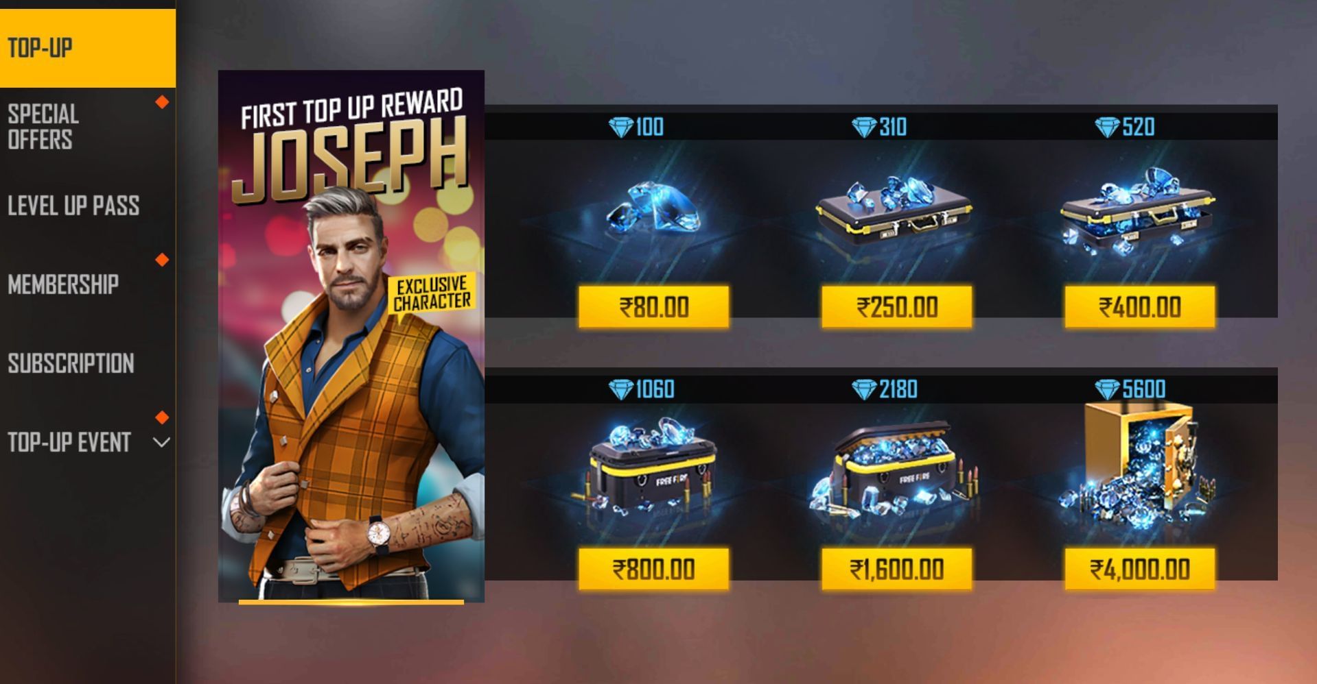 Steps to top-up diamonds and get the rewards