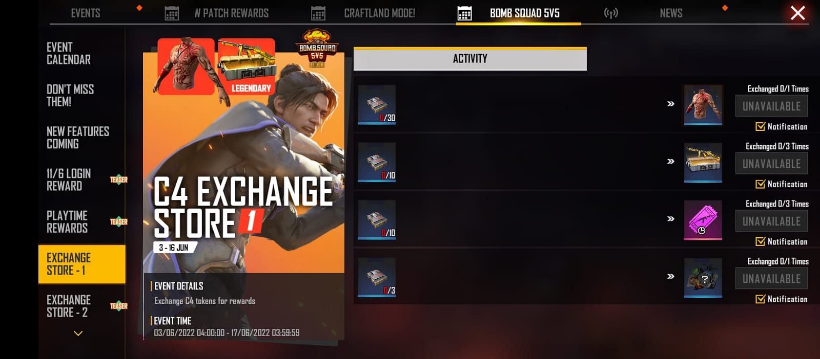Before all the events are over on June 16, 2022, players have a lot to look forward to in the game. Here are the details of the C4 Exchange Store 1 rewards that were unveiled today.