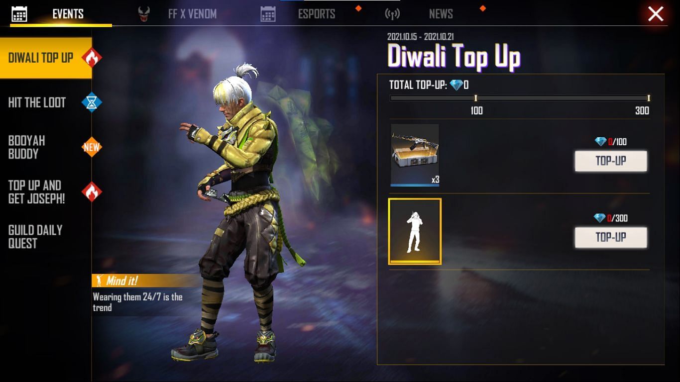 Step 1: First, players should open the events tab and select Diwali Top Up.