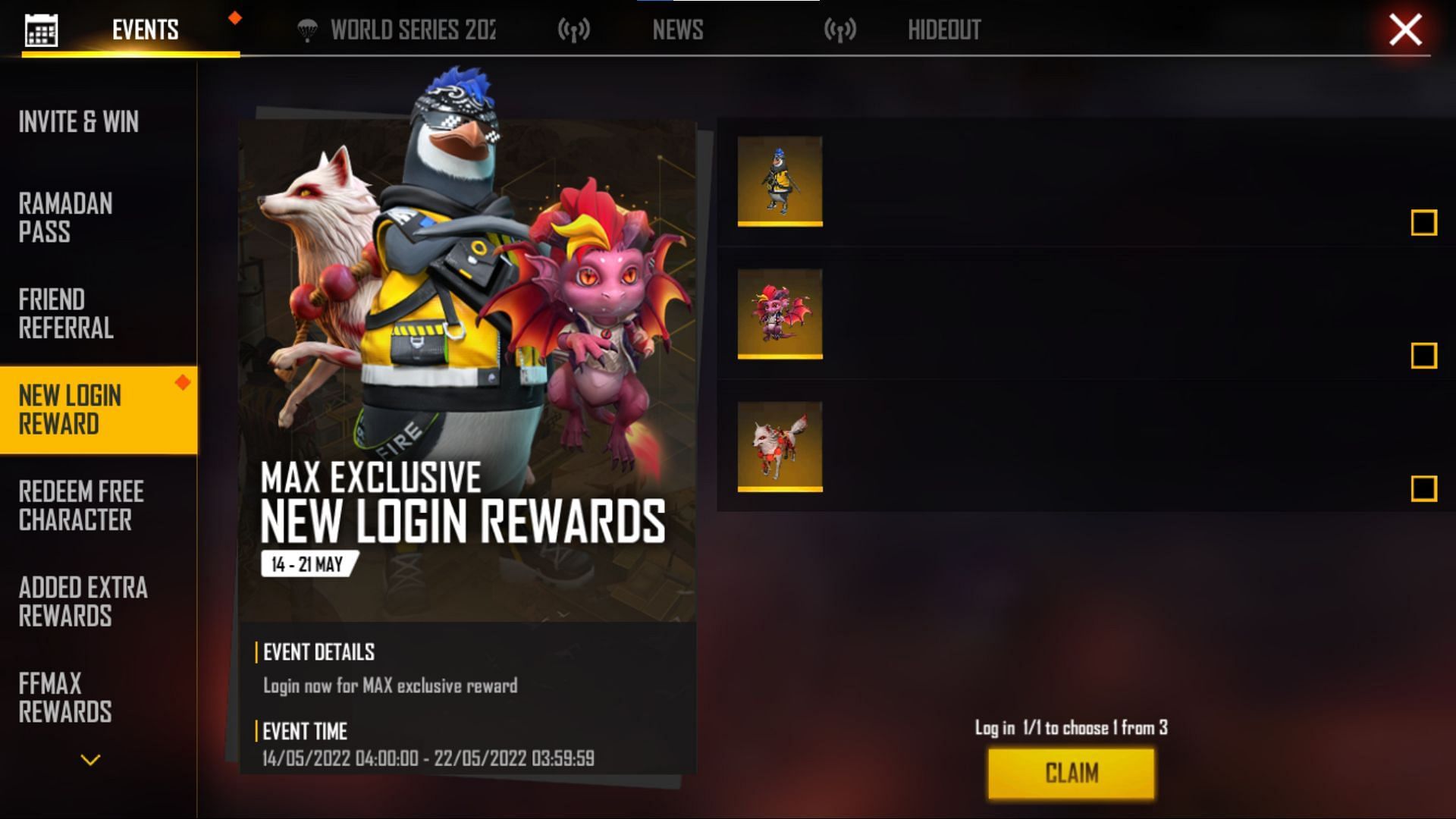 The new MAX Exclusive Login event kicked off on 14 May, and gamers can sign in for a single day until 21 May to collect one of the three pets for free. The available ones are as follows: