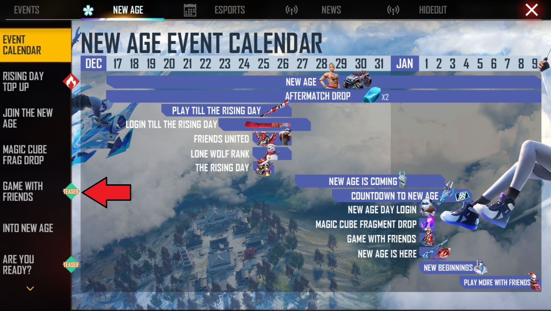 The New Age has added tons of unique events to Free Fire, and recently, the developers have added a preview of one that is upcoming, "Game with Friends", which will be available to players on January 1.