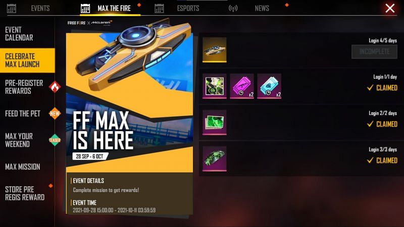 All those users who had pre-registered for Free Fire Max on the Google Play Store can now claim the “Cyber MAX Loot Box” and a Diamond Royale Voucher as rewards. They have until 10 October to claim these two items from the “Max the Fire” event section.