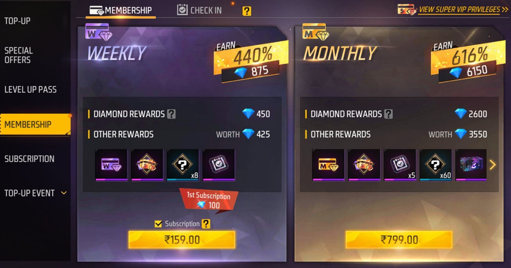Membership plans are relatively cheaper and more rewarding, as players can claim a variety of other prizes besides diamonds.