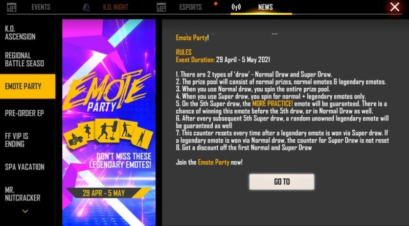 Players can follow the steps given below to access the Emote Party event in Free Fire: