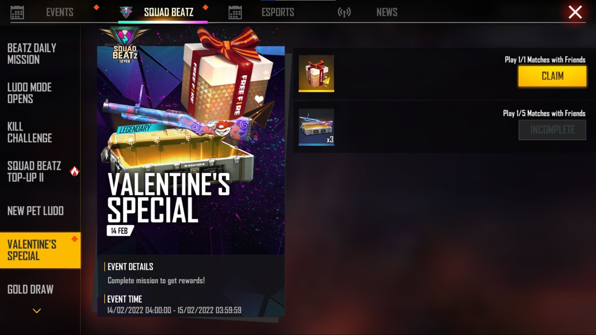 Step 2: Next, they must select Valentine’s Special section and click on the claim button to receive the rewards.