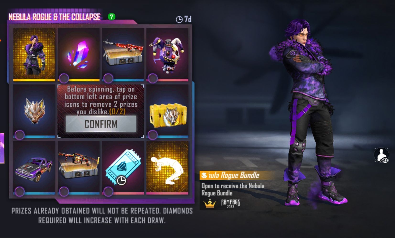 Step 3: Finally, gamers must remove two undesired items from the prize pool by clicking on the bottom-right corner. They should confirm their selection to proceed ahead.