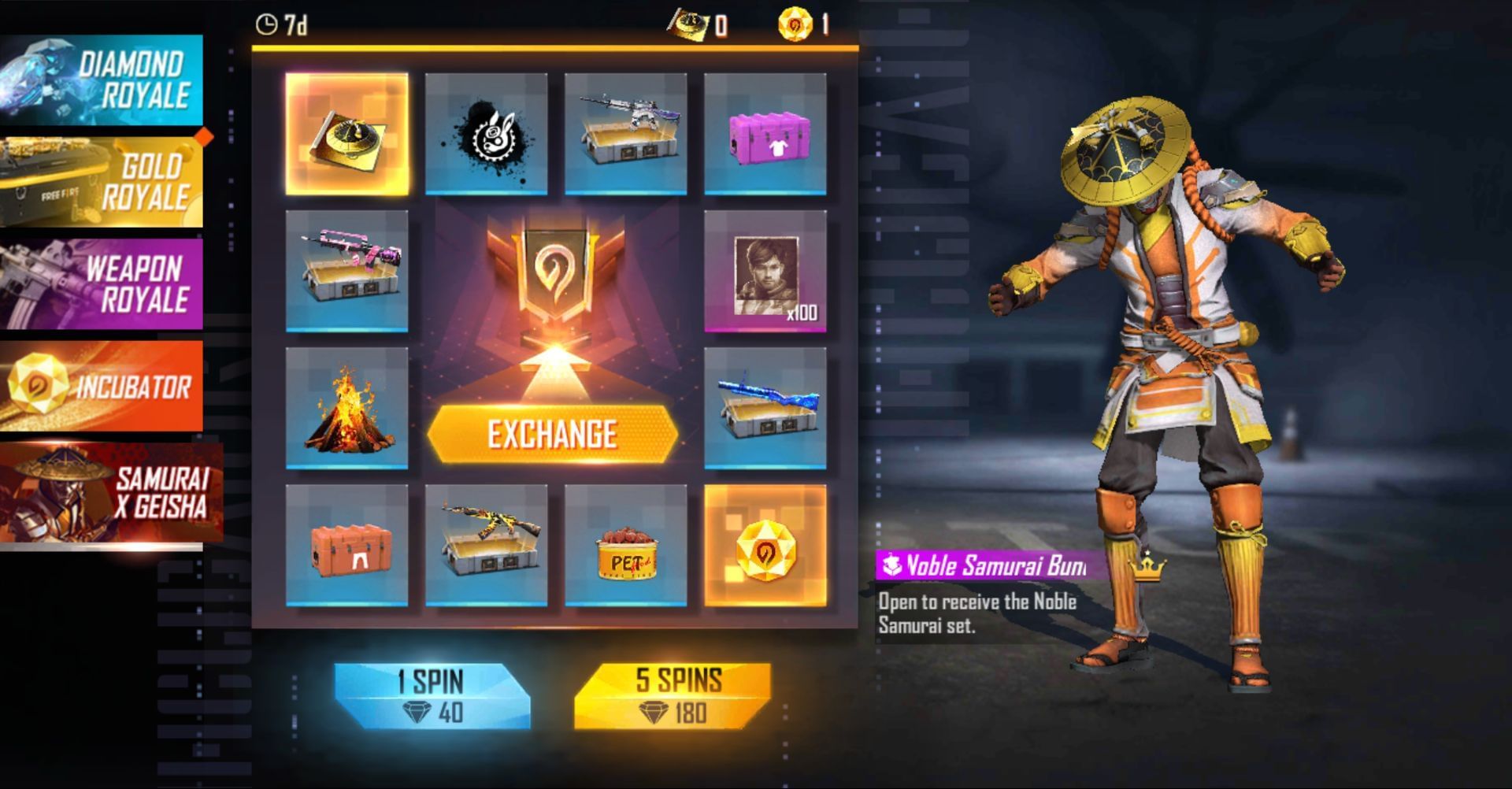 Samurai Geisha Incubator provides exclusive cosmetics in Free Fire MAX