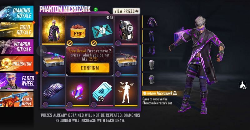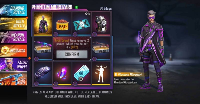 Step 2: Next, players must tap the Faded Wheel option and then select two of the prizes from the pool that they do not wish to obtain.