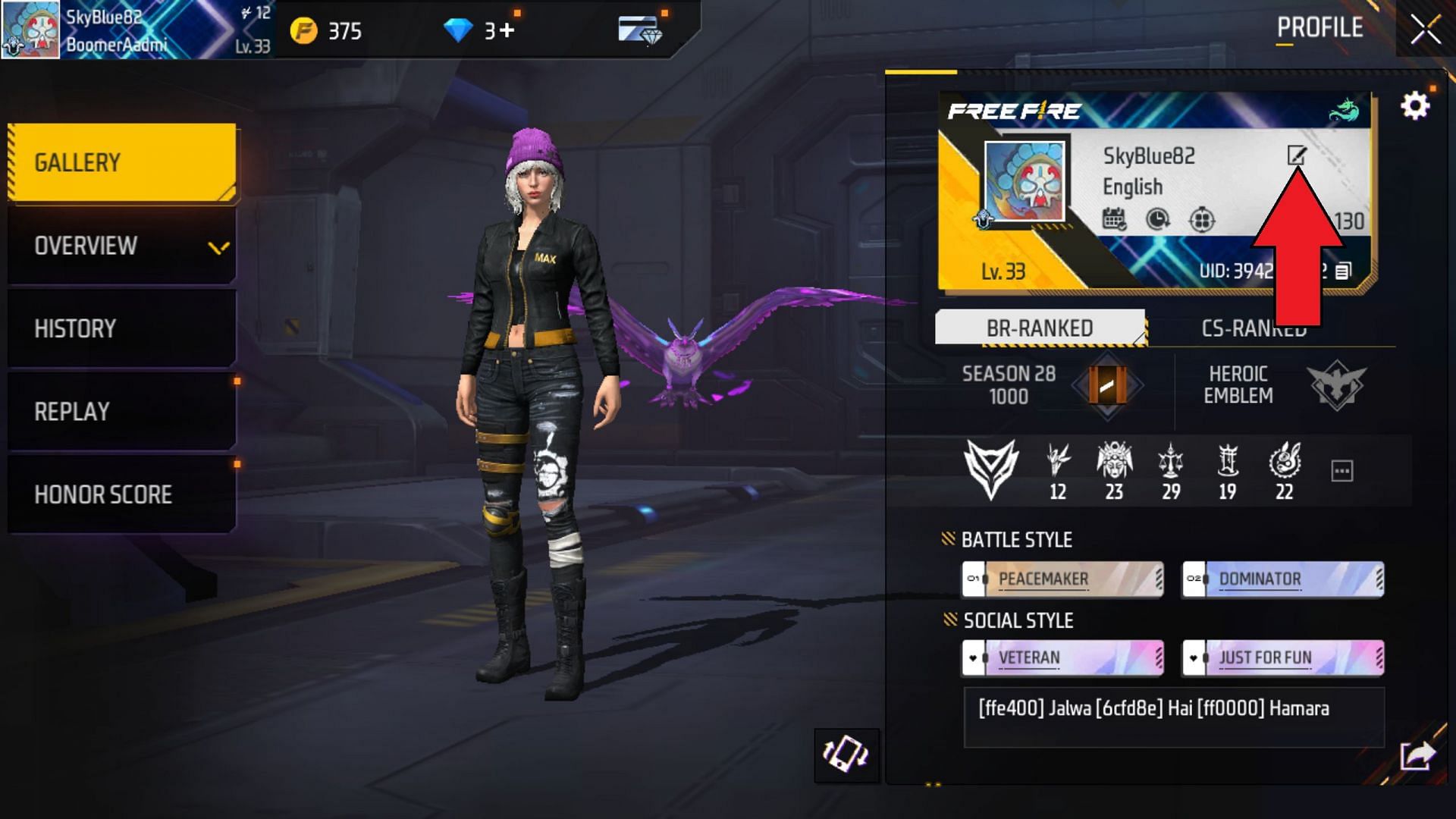 Step 2: Once on their in-game profiles, they can tap on the icon next to their current in-game name.