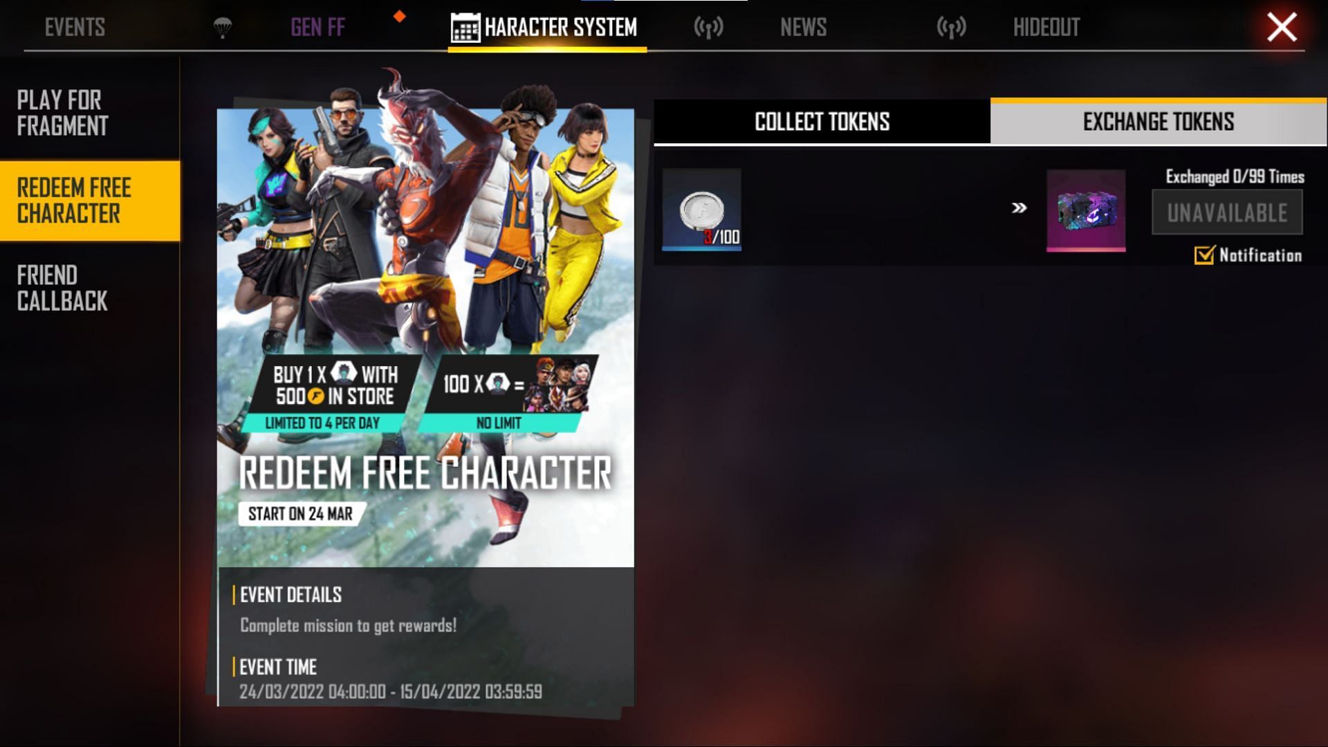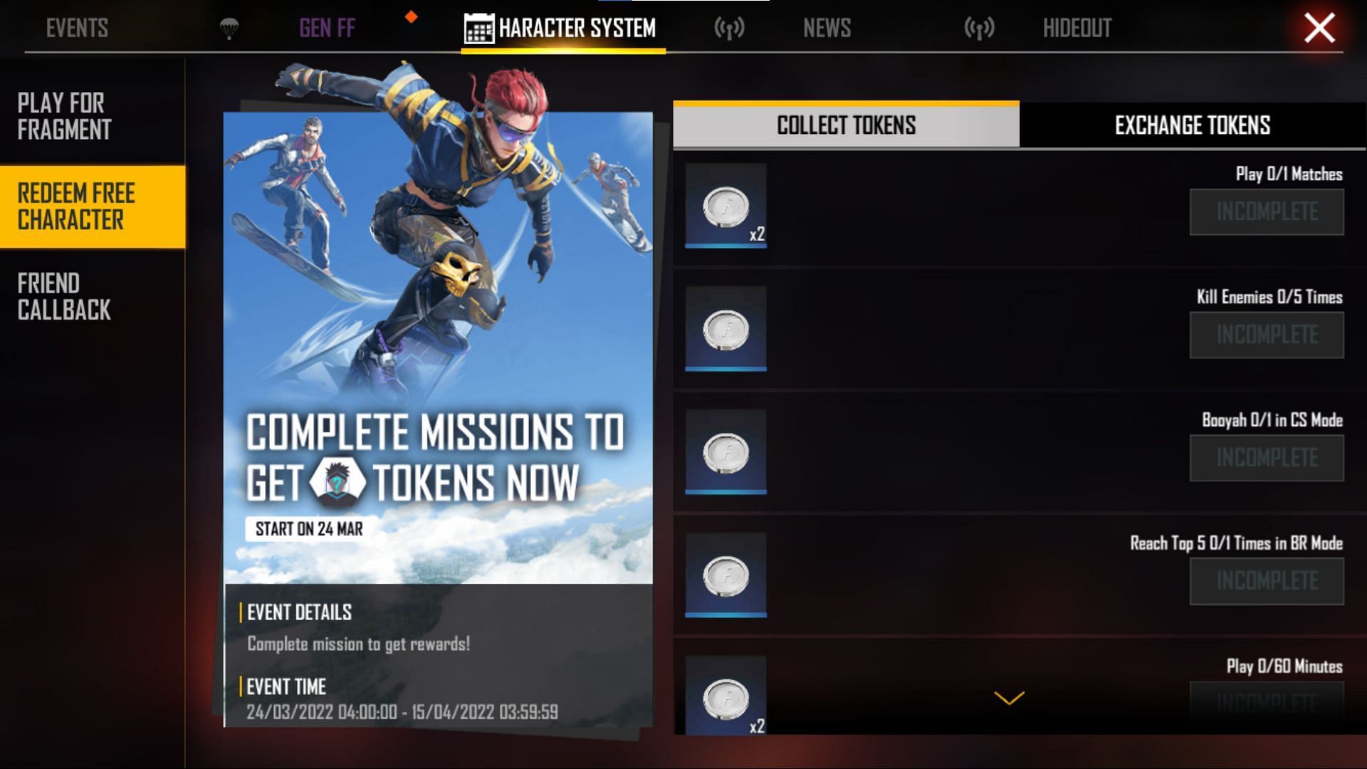 Since 24 March 2022, free characters have been available in Free Fire MAX, and gamers have more than two weeks to complete the requirements.