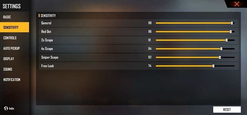 For a close combat situation like in Free Fire's Clash Squad mode, players can set all settings to a high percentage for quicker reflexes, return fire, and movement. Players can follow the steps given below to enhance their default sensitivity settings in Free Fire: