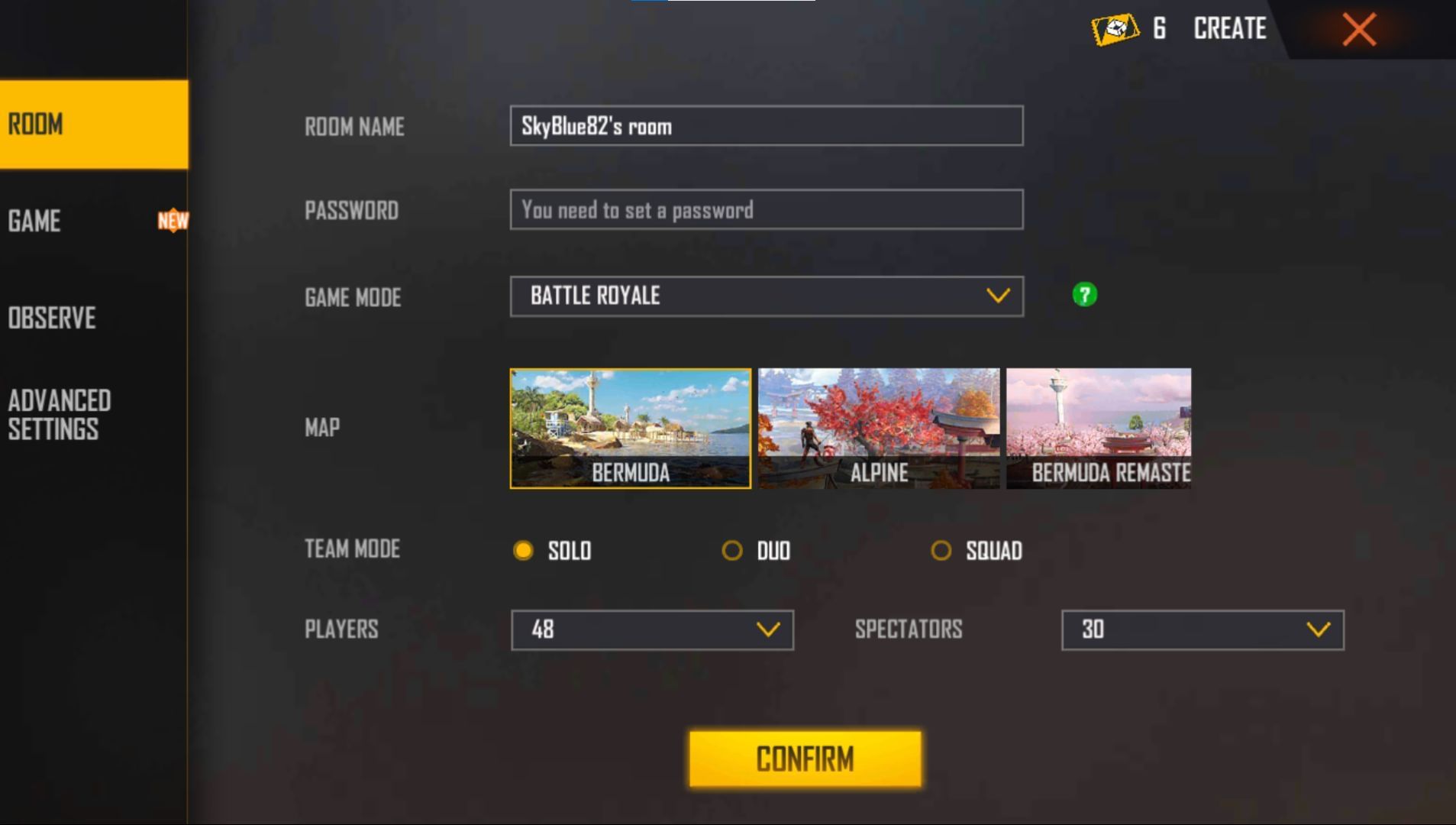 Step 3: This will take them to the ‘Custom Room’ section, and gamers must tap on the ‘Create’ option.