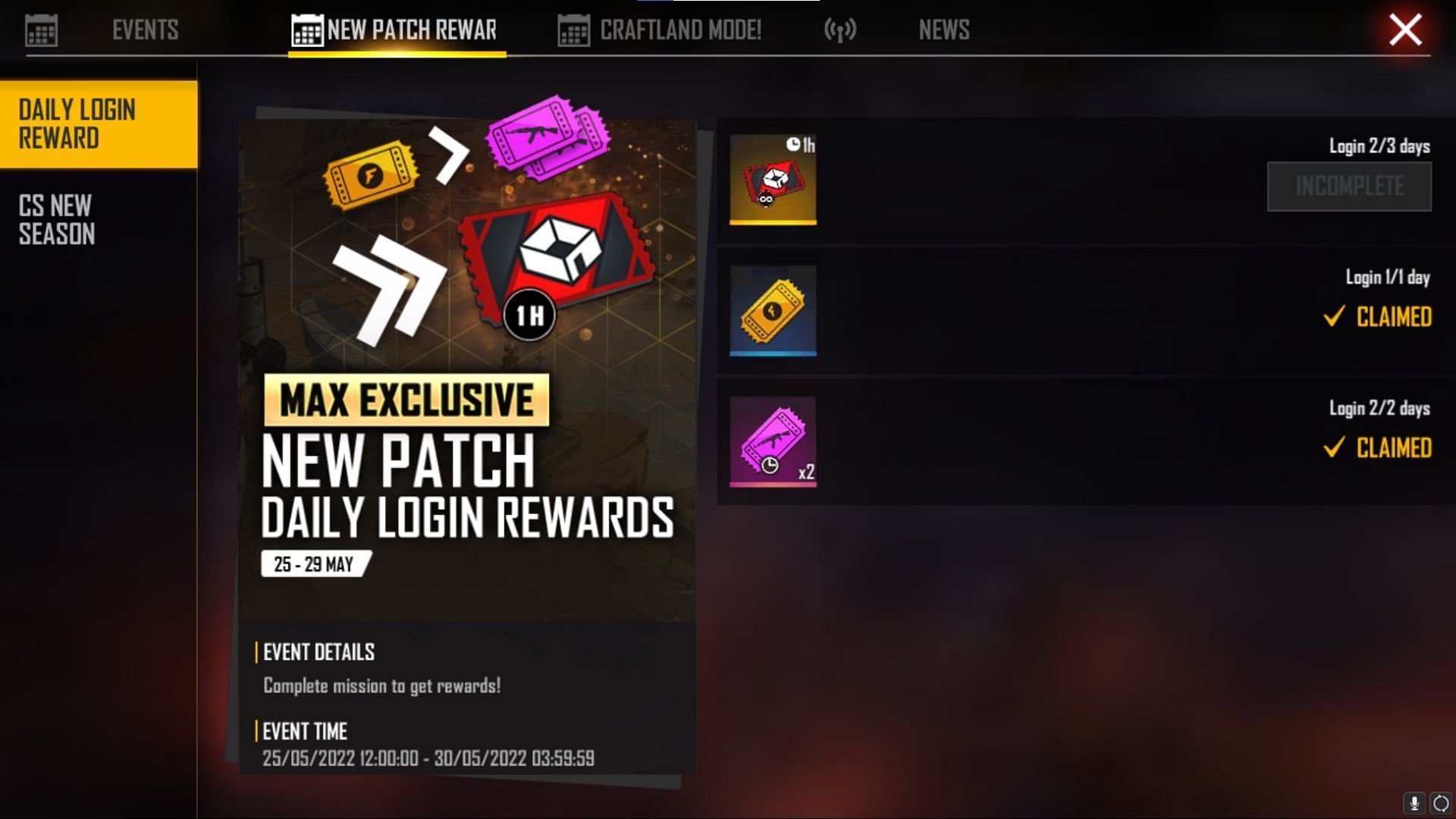 If gamers have signed in on each day since the event’s start, they will be able to claim the red room card today. Visit the ‘Events’ tab in Free Fire MAX and tap on the ‘New Patch Rewards’ section. They may press the ‘Claim’ button beside the red room card under the ‘Daily Login Reward’ section.