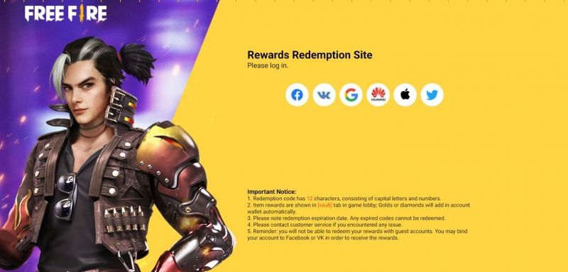 Step 1: This link will take players to the official website designed to use the redeem code. Once they have landed on the webpage, gamers will need to sign in to their Free Fire Max account.