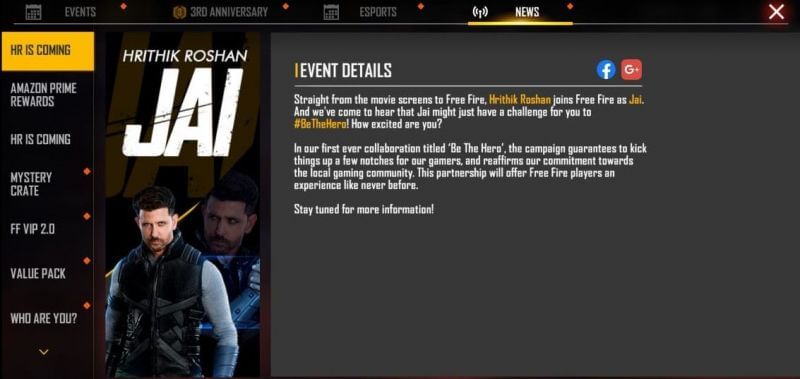 Straight from the movie screens to Free Fire, Hrithik Roshan joins Free Fire as Jai. And we’ve come to hear that Jai might have a challenge for you to #BeTheHero! How excited are you?