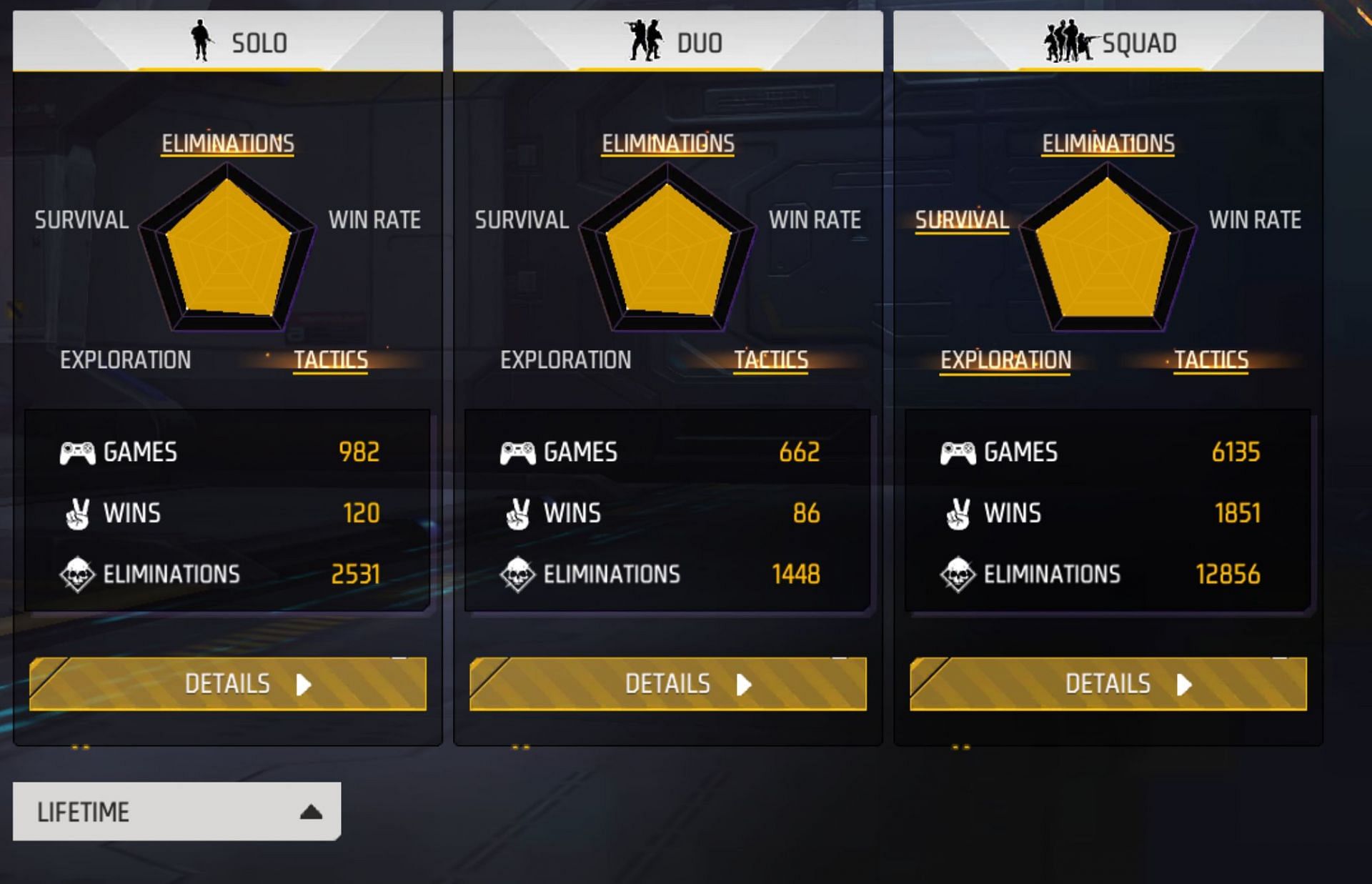 The Indian star has competed in 982 solo games and secured first place 120 times, approximating a win rate of 12.21%. With 2531 eliminations and 403 headshots, he has maintained a kill-to-death ratio of 2.94 and a headshot rate of 15.92%.