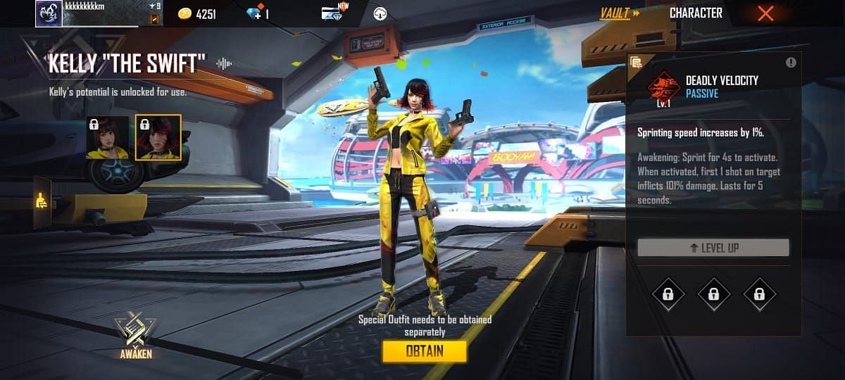 Kelly is another significant character that players can purchase with 2000 coins in Free Fire MAX. Her passive skill, Dash, improves the sprinting speed by 1 percent.