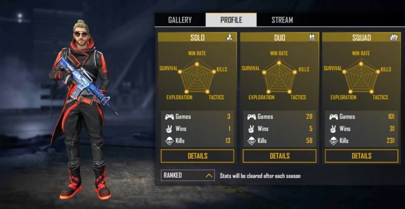 In the current ranked season, the streamer has competed in 101 squad matches and remained unbeaten in 31 of them, upholding a win ratio of 30.69%. With 231 kills, he has managed a K/D ratio of 3.30.