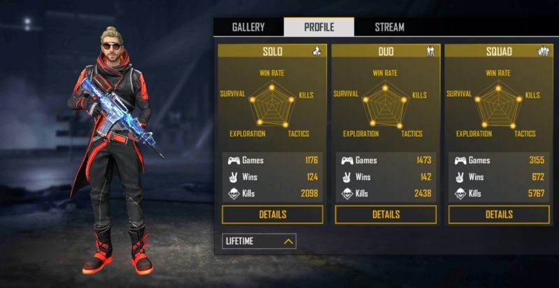 In the duo mode, the internet star has appeared in 28 games and has five Booyahs, coming down to a win percentage of 17.85%. He has amassed 58 kills in the mode for a K/D ratio of 2.52.