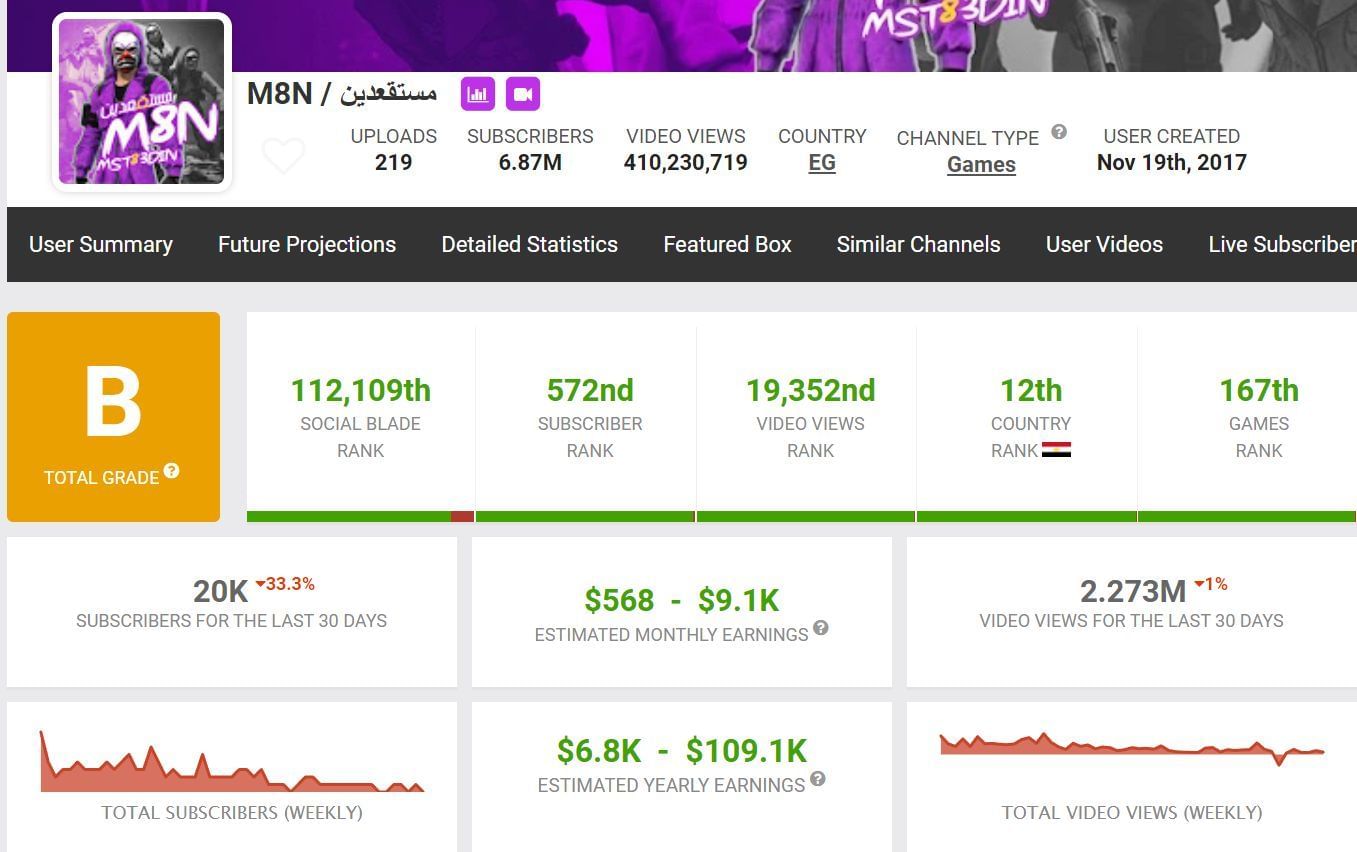 Social Blade reports M8N’s monthly income to be in the range of $568 to $9.1K. The estimated yearly figures for his revenue are $6.8K to $109.1K.