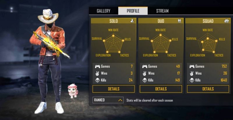 The YouTuber has also played 49 duo games and triumphed on 17 occasions, which returns a win rate of 34.69%. He has killed 149 foes and maintained an excellent K/D ratio of 4.66.