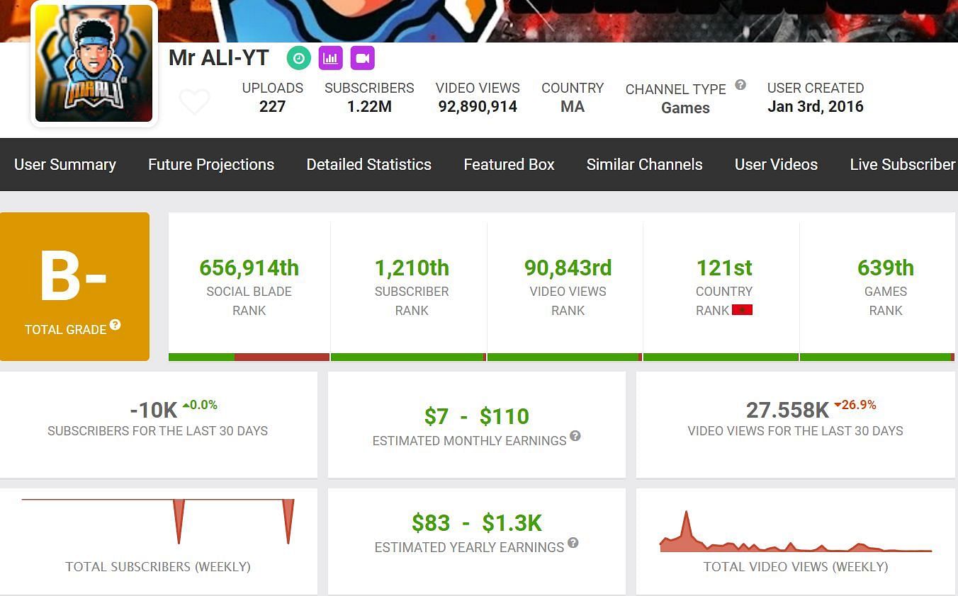 According to Social Blade, Mr Ali's monthly YouTube revenue is estimated to be within the range of $7 to $110. He is estimated to make anywhere between $83 and $1.3K from the channel in a year.