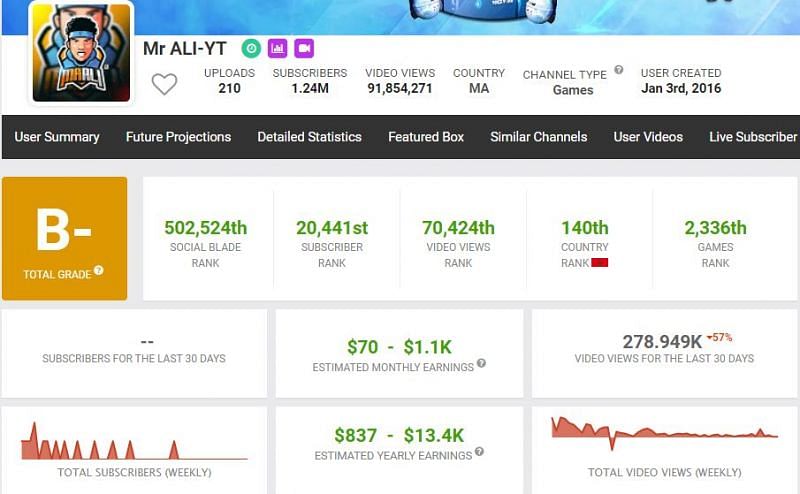 According to Social Blade, Mr Ali YT’s estimated monthly YouTube earnings are in the range of $70 to $1.1K. His approximate yearly income is between $837 and $13.4K.