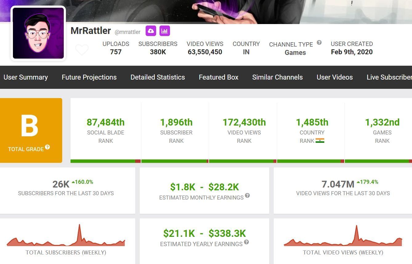 According to Social Blade, MrRattler has gained 26 thousand subscribers in the previous 30 days. In addition, the content creator’s total view count has expanded by 7.047 million.
