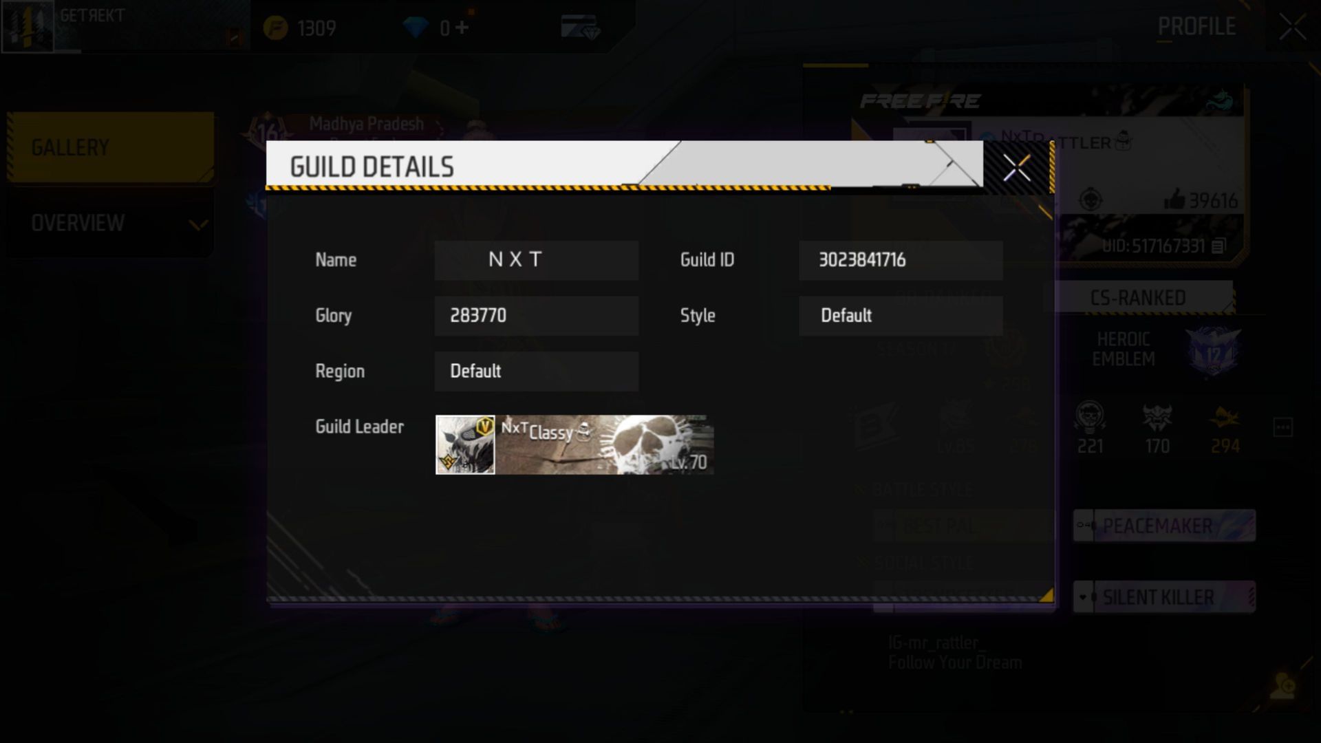 MrRattler is a part of the NXT guild inside Free Fire MAX, and the Guild ID is 3023841716. He ranks Silver III and Grandmaster in the game’s Battle Royale and Clash Squad modes, respectively.