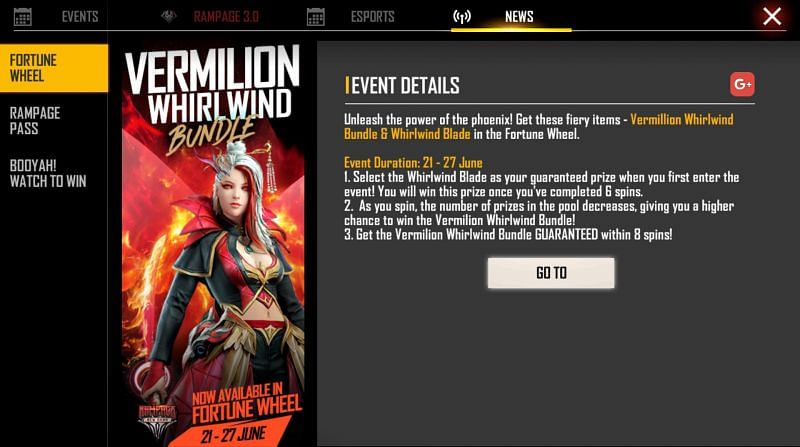 This article provides users with an overview of how they can obtain the Vermilion Whirlwind bundle in Free Fire.
