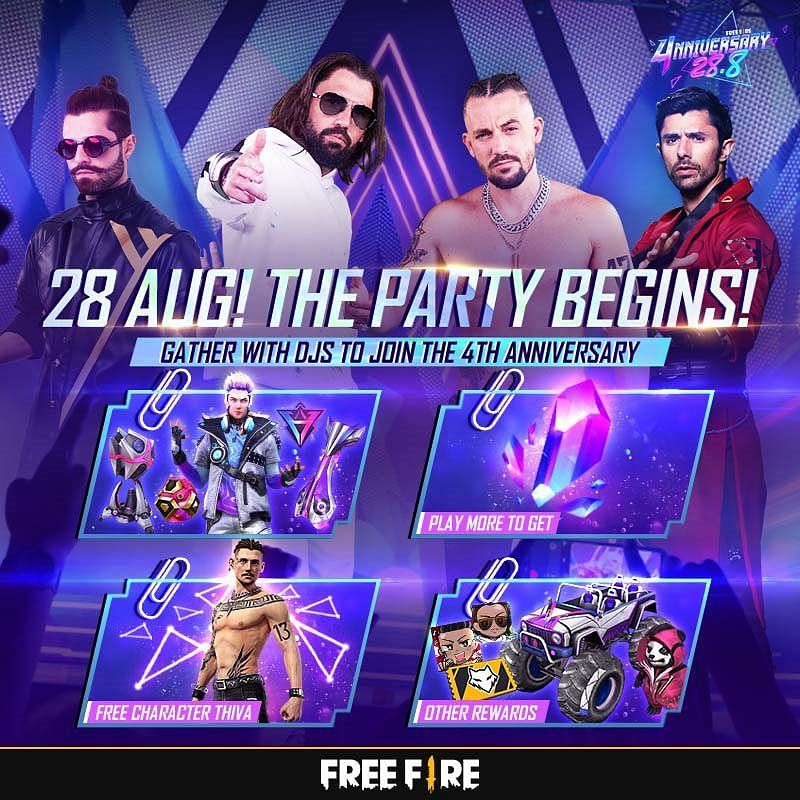 All the celebrations will culminate in the 4th-anniversary party taking place in Free Fire on 28 August.