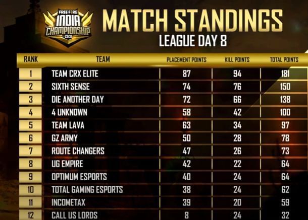 Day 8 of Free Fire India Championship's League Stage has drawn to a close. With two wins, Team CRX Elite shined in all the games among Group A & Group B.