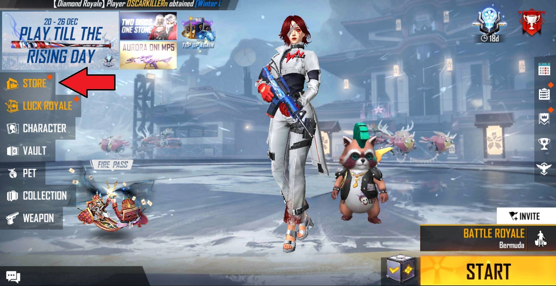 Step 1: Once Free Fire is open on the players’ device, they need to click on the ‘Store’ icon, which is present on the left side of the lobby screen.