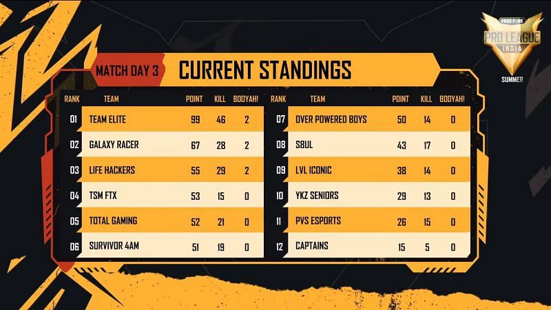 Free Fire City Pro League 2021 Day 3 Match Standings: