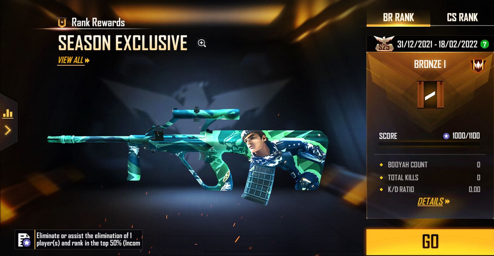 Season 25 (Battle Royale) of BR Ranked began in Free Fire in late December and has been ongoing for almost a month. Users now have just a few weeks left to work their way up the various tiers and get their hands on the rewards that the developers have set.