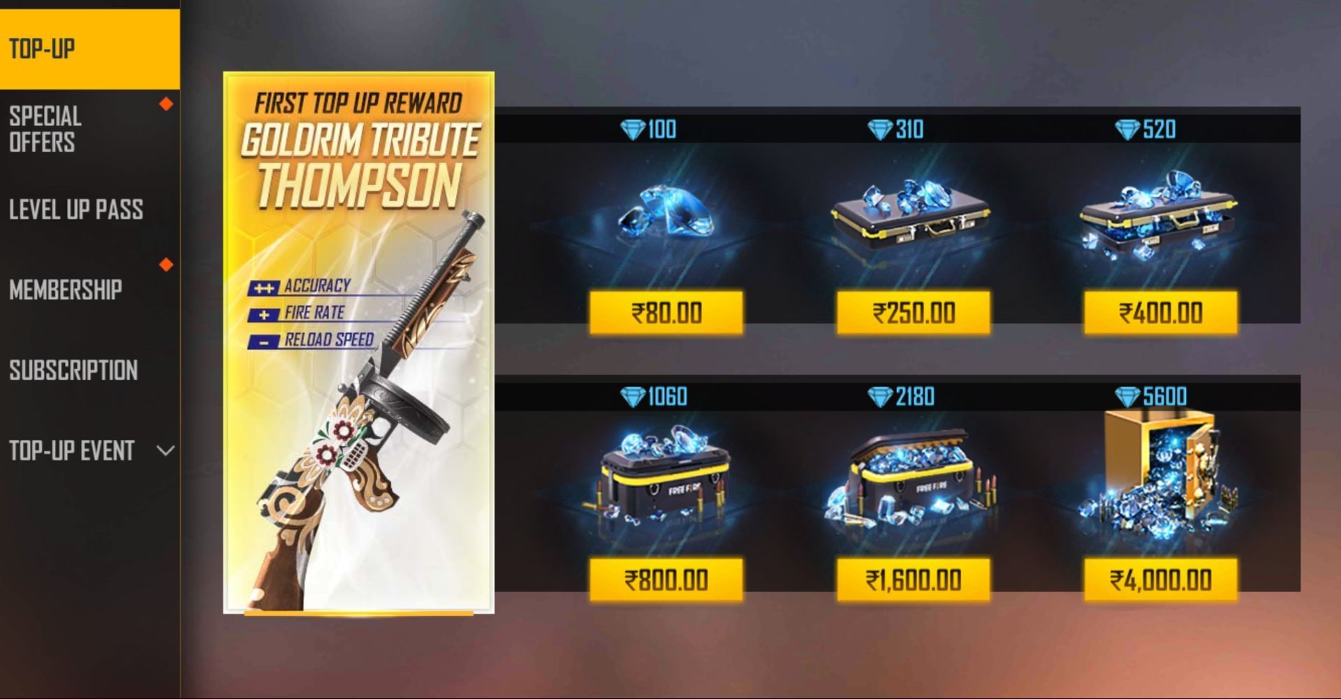 Step 3: Once the diamonds are credited to your account, you must open the events tab and select Spirit Unbroken Top Up.