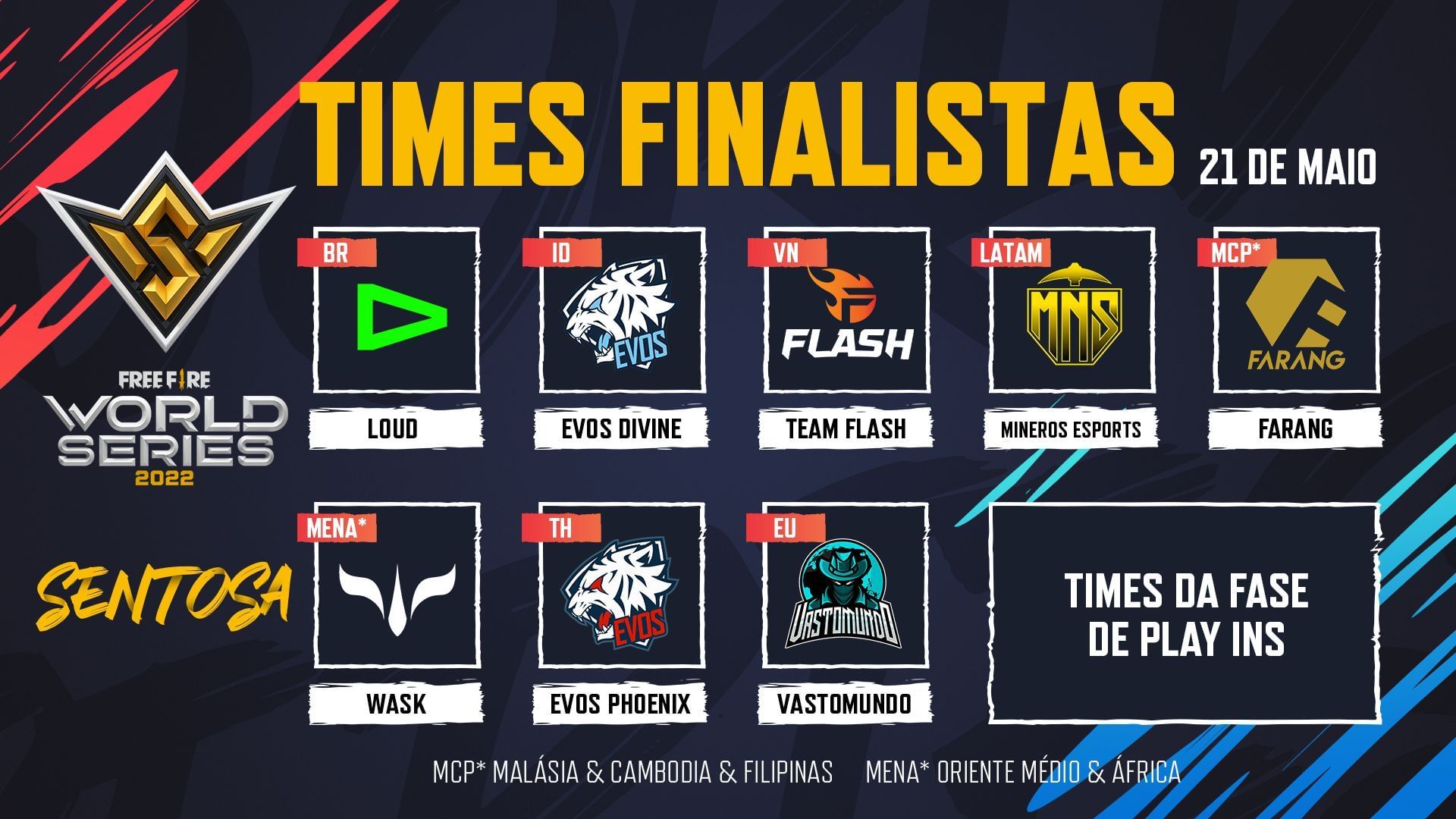 Free Fire World Series 2022 Sentosa teams