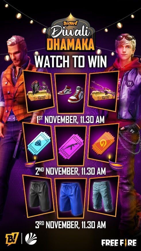 Fans are invited to celebrate Diwali in true BOOYAH! style with lots of excitement and prizes to be won as they watch their favorite teams compete to come out on top. Viewers who tune in and watch the broadcast for 30 and 60 minutes stand a chance to win amazing drops such as Free Fire emotes, jerseys, and multiple crates!