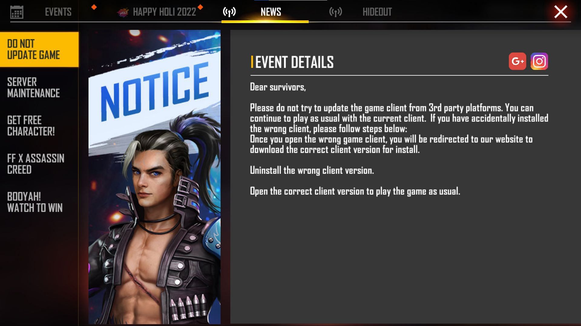 Free Fire developers have requested players not to download the client from third-party platforms as they can generally continue to play the game with their current version.