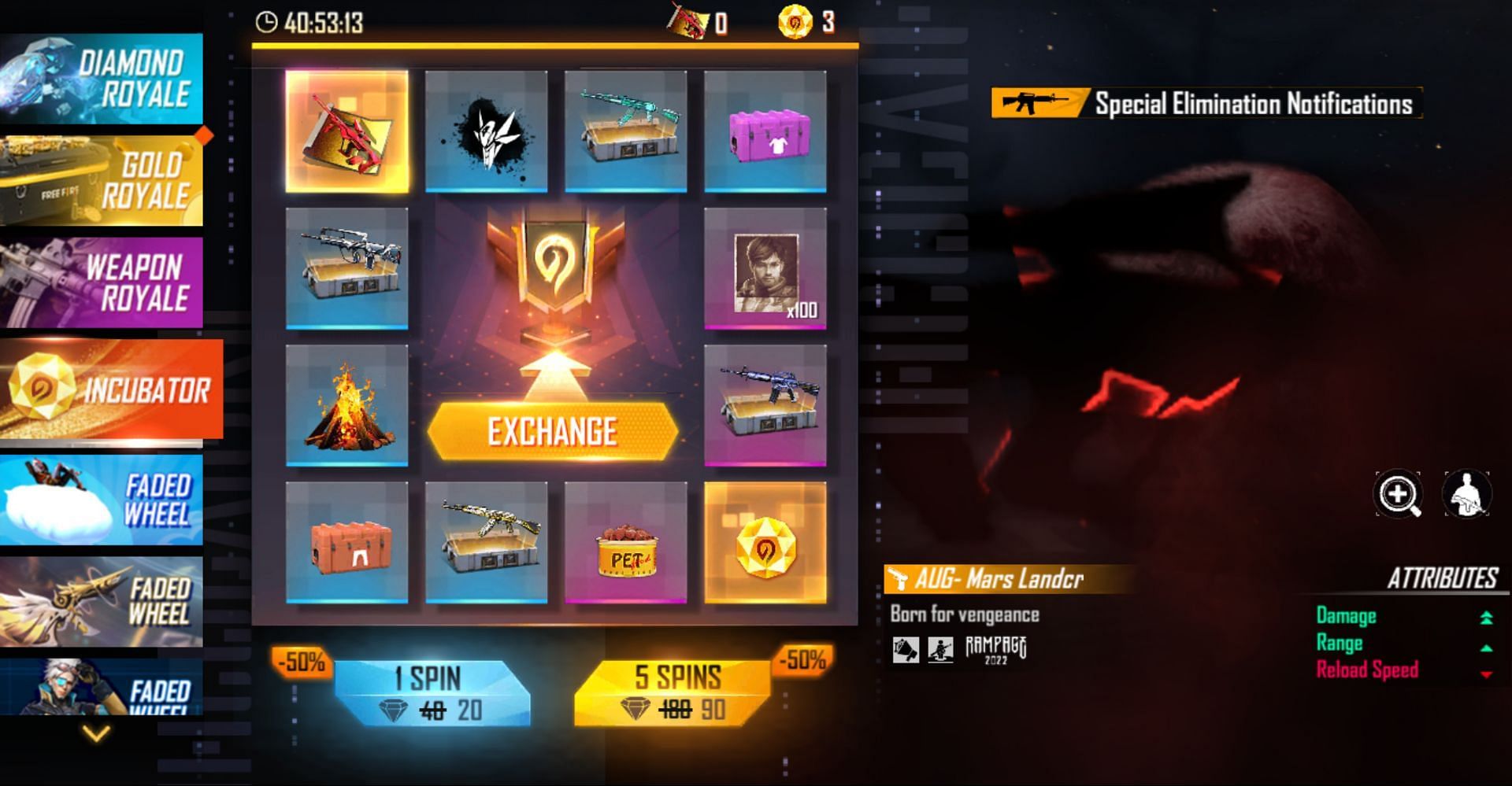 How to get the AUG Mars Landcrusher and other skins from Free Fire MAX incubator