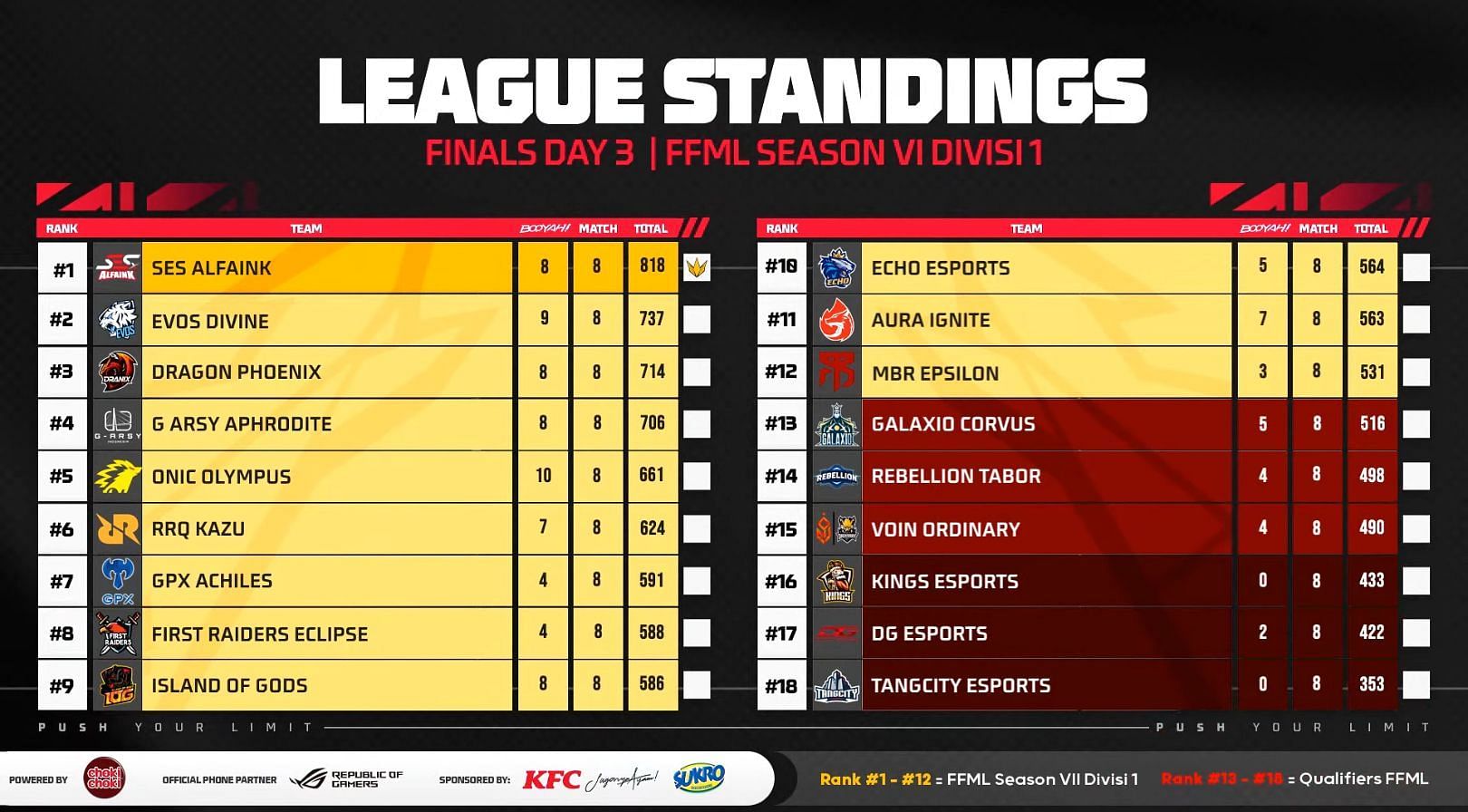This is the first official trophy for SES Alfaink since its entry into the Free Fire Esports scene in 2019. The side garnered 818 points with the help of eight Booyahs. The tournament featured only one stage, the Regular Season, that ran over four weeks and comprised 48 matches for each team.