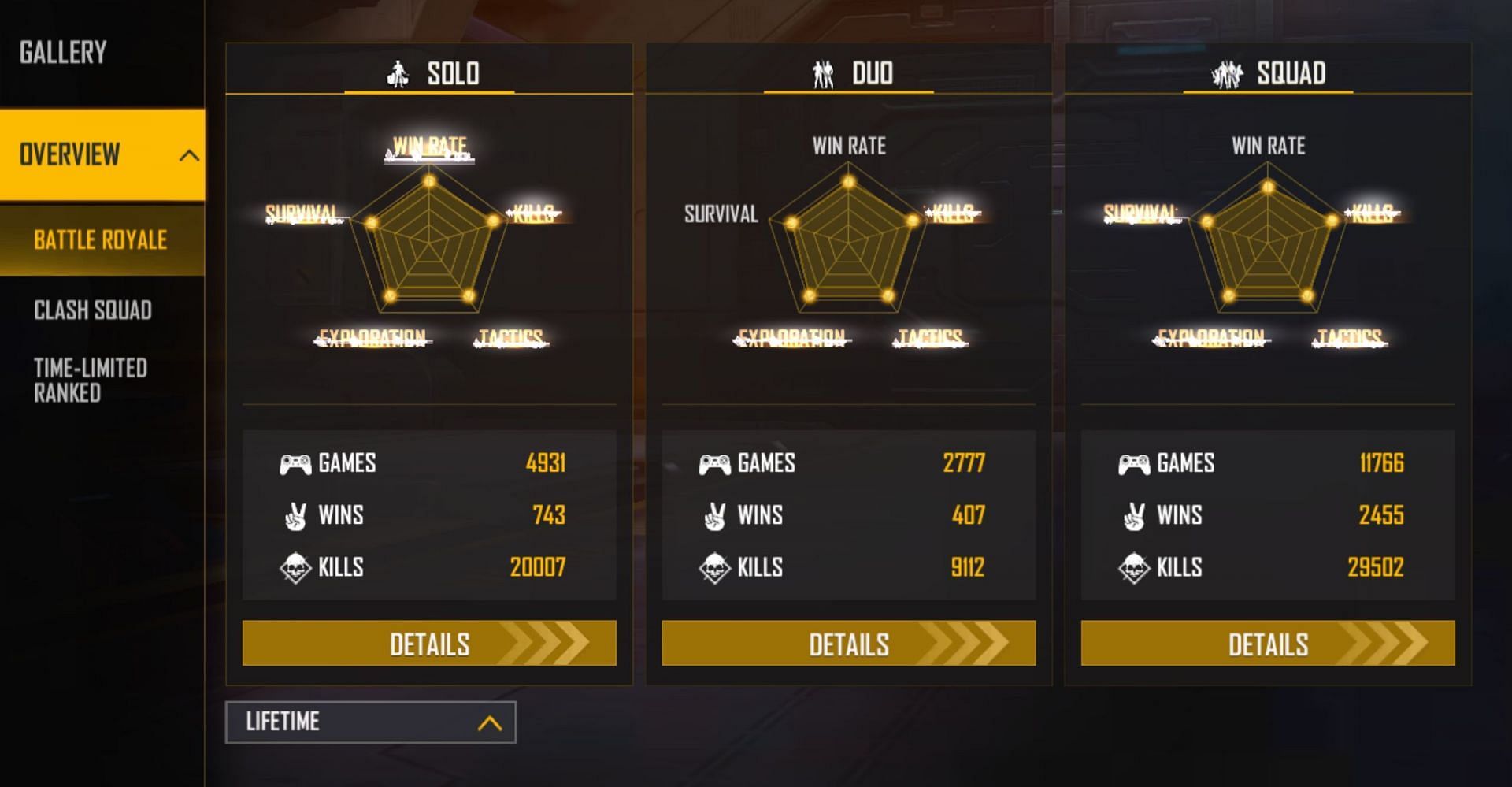 The famous figure has also appeared in 4931 solo games and has bettered his foes in 743 matches for a win rate of 15.06%. In addition, he has 20007 kills with a K/D ratio of 4.78.