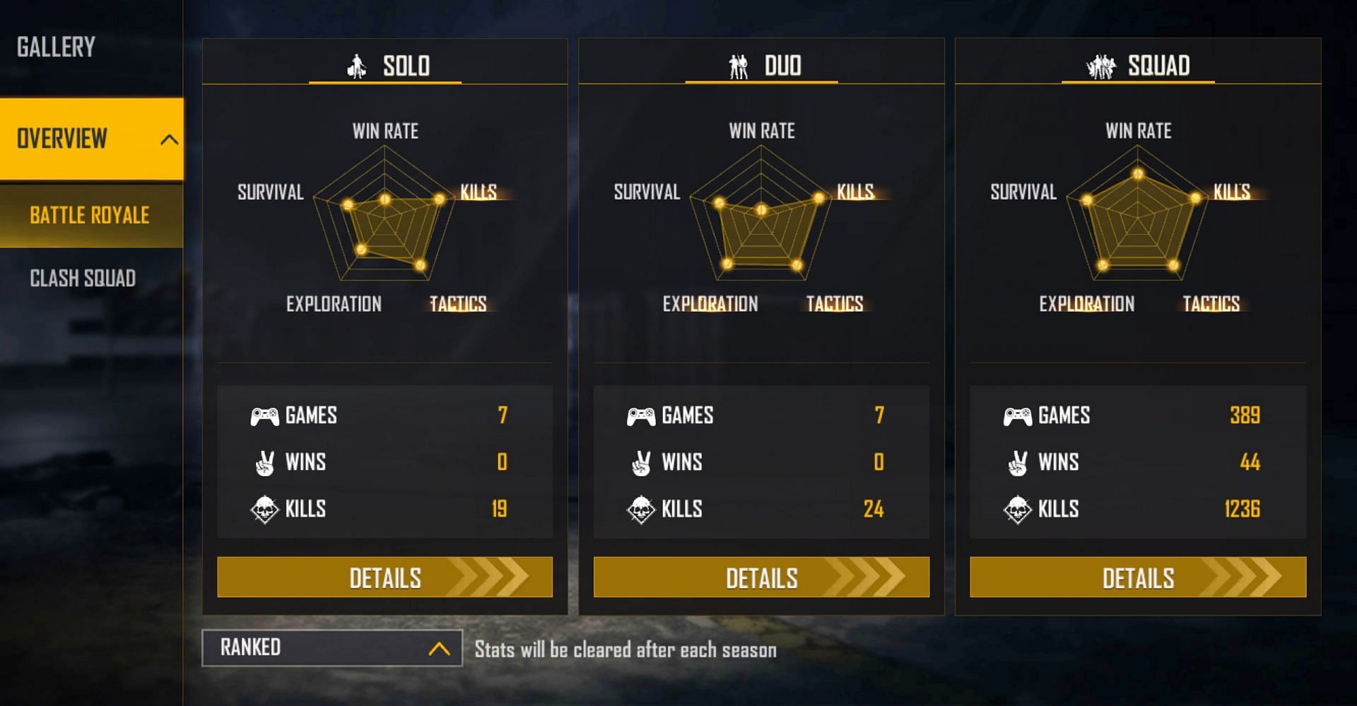 In the current season, the YouTuber has bettered his foes in 44 of the 389 squad ranked matches, translating to a win rate of 11.31%. At a K/D ratio of 3.58, he has 1,236 kills.