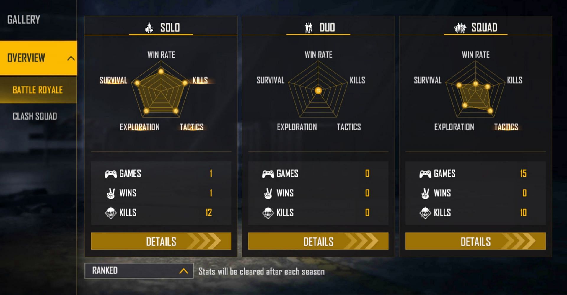 Apart from this, the YouTuber has competed in a single solo match. He secured the Booyah, killing 12 enemies.