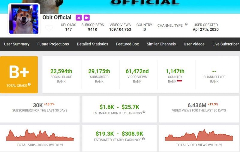 As per the estimates on Social Blade, the monthly income of Obit Official from his channel is between $1.6K and $25.7K.